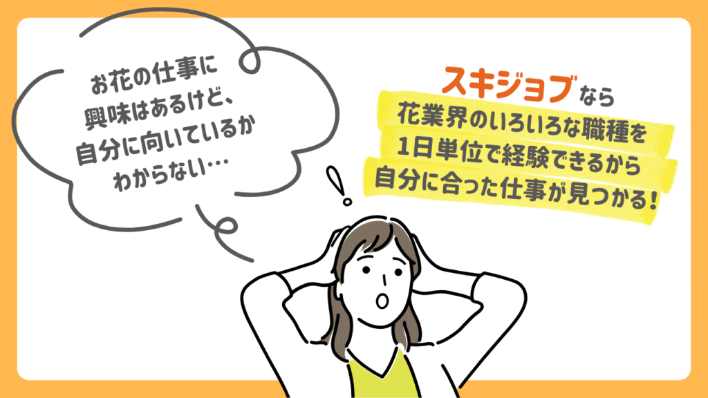 花業界に特化した「スキジョブ」を使えば、自分に合ったお花の仕事を見つけられます。