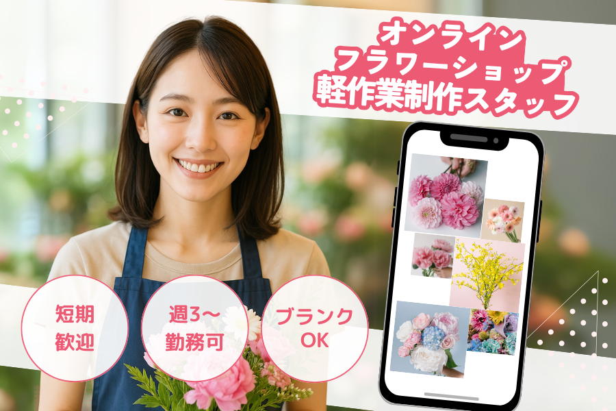 - 話題のサブスク・オンライン花屋で軽作業◎