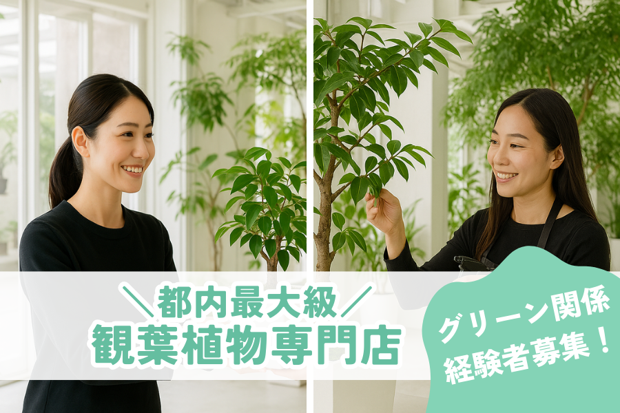 観葉植物専門店の販売スタッフ 都内最大級の専門店!経験者